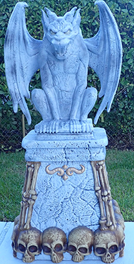 Modified the gargoyle purchased from Home Depot last year. Dry painted grey and added LED eyes to the skulls.